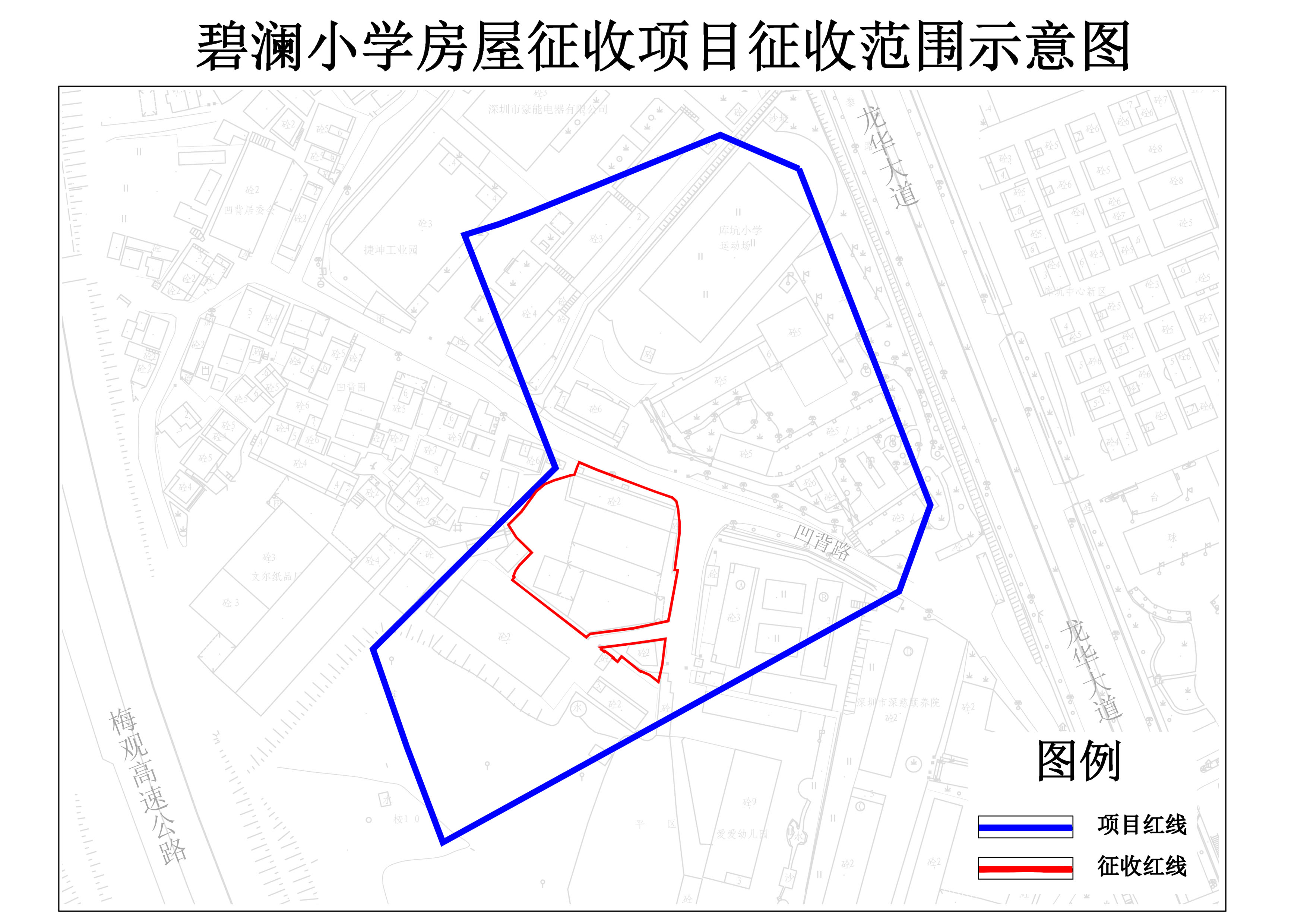 因碧瀾小學建設項目的需要,根據《國有土地上房屋征收與補償條例》(國務院令第590號)、《深圳市房屋征收與補償實施辦法(試行)》(深圳市人民政府令第292號)、《深圳市人民政府關于修改部分規章的決定》(深圳市人民政府令第342號)等相關規定,現決定依法征收碧瀾小學建設項目范圍內的房屋(國有土地使用權同時收回)。具體征收事項如下: