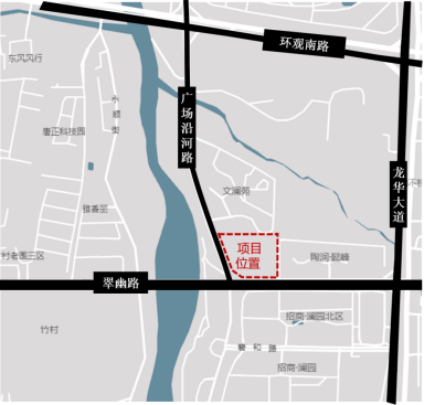 項目位于深圳市龍華區觀湖街道翠幽路與廣場沿河路交叉口,北臨龍華區政府投資公共住房小區文瀾苑,東北側毗鄰龍華區在建政府投資公共住房項目潤湖苑,東側為陶潤懿峰商品房小區。位于《深圳市寶安BA401-11&14&20號片區[觀瀾新中心地區]法定圖則》12-16地塊子單元范圍內。