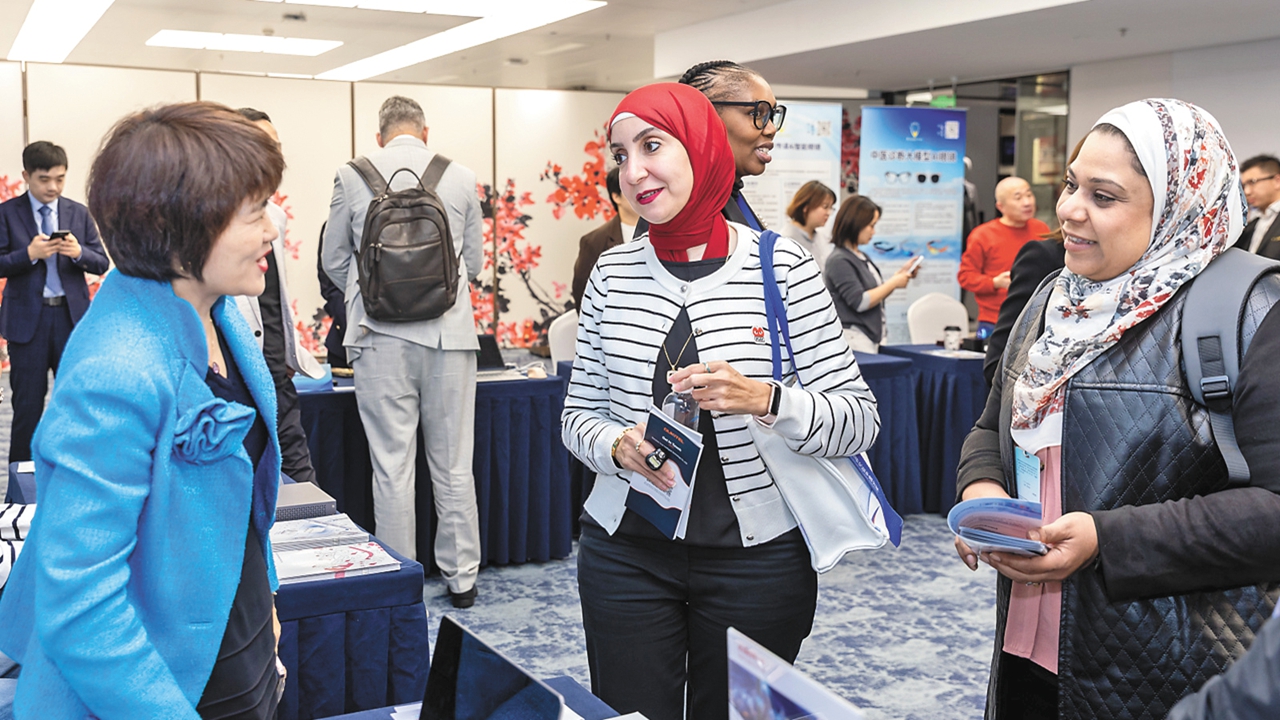 Participants engage in a conversation during the BRICS Information and Communication Industry Matchmaking Event held at the Longhua International Cooperation Center (LICC). Courtesy of the LICC