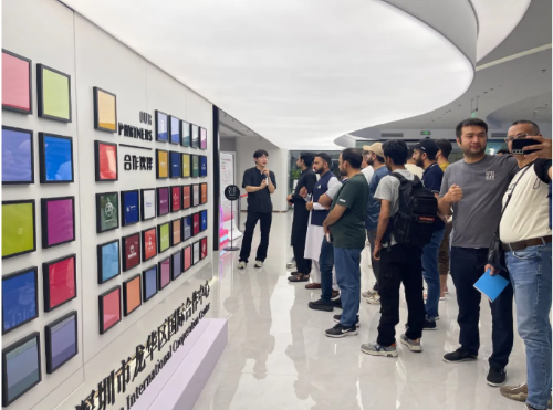 International students from universities across Shenzhen take a tour of the Longhua International Cooperation Center on Friday.