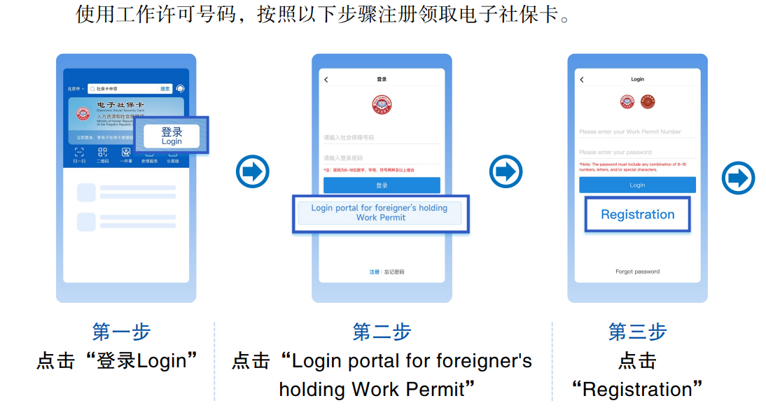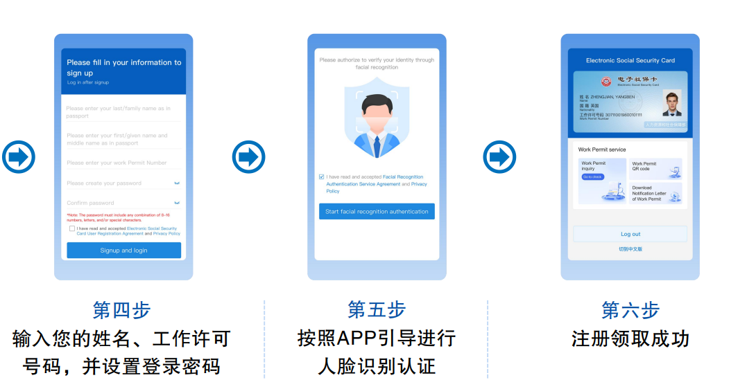 STEP2. Use your work permit number to register and follow the steps below to claim your electronic social security card: