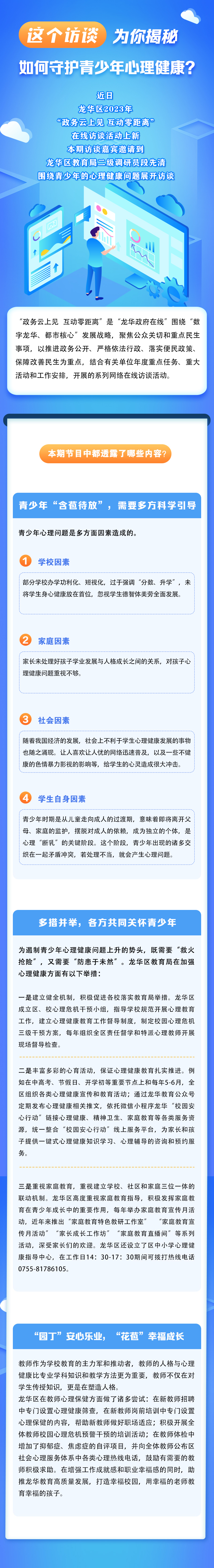 各位市民網友,大家好!歡迎收看《政務云上見 互動零距離》系列在線訪談,今天我們有幸邀請到龍華區(qū)教育局二級調研員段先清做客演播室。段處您好!歡迎做客今天的節(jié)目。