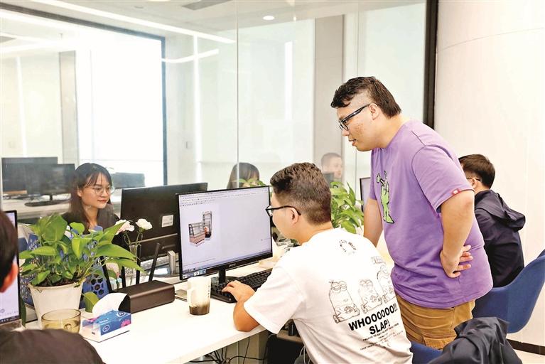 港澳青年創業團隊在中心交流業務。