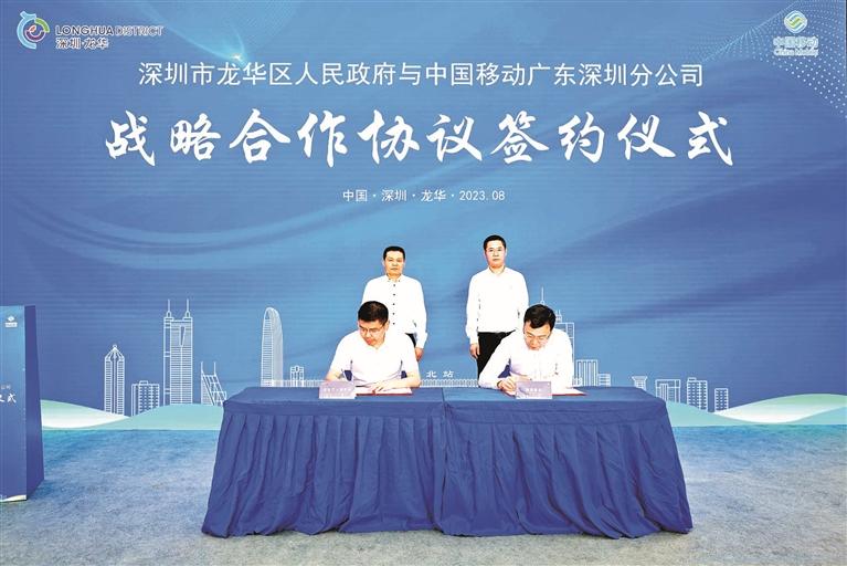8月1日上午,龍華區人民政府與中國移動通信集團廣東有限公司深圳分公司(以下簡稱“深圳移動”)簽訂戰略合作協議,雙方將在新型基礎設施建設、應用場景營造、數字城區建設等領域展開深度合作。龍華區委副書記、區長雷衛華,區領導徐志斌,中國移動通信集團廣東有限公司深圳分公司黨委書記、總經理周忠坤,黨委副書記張本暉,黨委委員、副總經理趙武、廖海濤出席簽約儀式。
