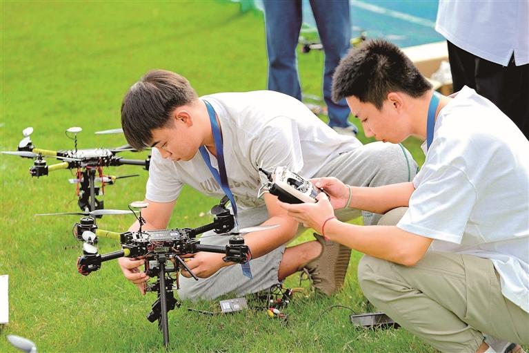 全國無人機職業技能大賽參賽者進行無人機組裝調試。