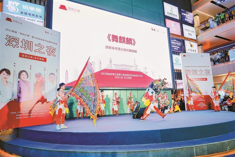 11月25日晚上,伴隨著鑼鼓聲,由謝碧華領隊的國家級非遺大船坑舞麒麟在龍華區大浪覔文化創意園精彩上演,為2023首屆“深圳之夜”第六站龍華站演講分享會正式拉開帷幕。從今年4月啟航至今,巡回走過惠州、東莞、佛山、廣州、珠海,“深圳之夜”終于回到深圳,第六站地點選在龍華,作為“深圳之夜”在灣區城市巡演后回到深圳主場舉辦的首場活動,盡顯龍華區域特性、深圳城市特質。