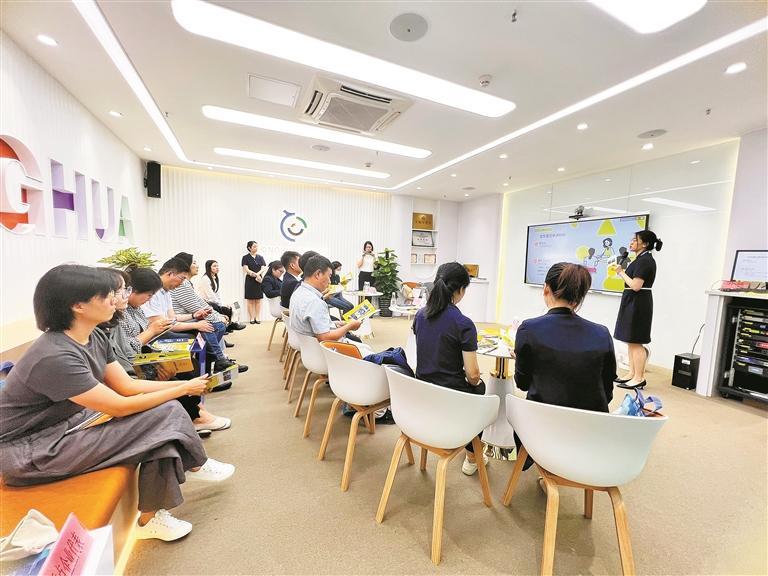 活動中,區政務服務中心負責人帶領企業代表參觀區政務服務中心,體驗“一窗通辦”服務。企業代表紛紛對龍華區優質的政務服務點贊。隨后,在新啟用的數智政企匯客廳開展首場政策宣講活動,區人力資源局工作人員從高層次人才認定、激勵,博士、博士后扶持,優秀青年骨干資助等方面解讀龍華區最新人才政策。區政數局業務骨干圍繞免申即享、政策AI計算器、《為民服務一本通》進行精講,并針對企業代表提出的問題耐心解答。