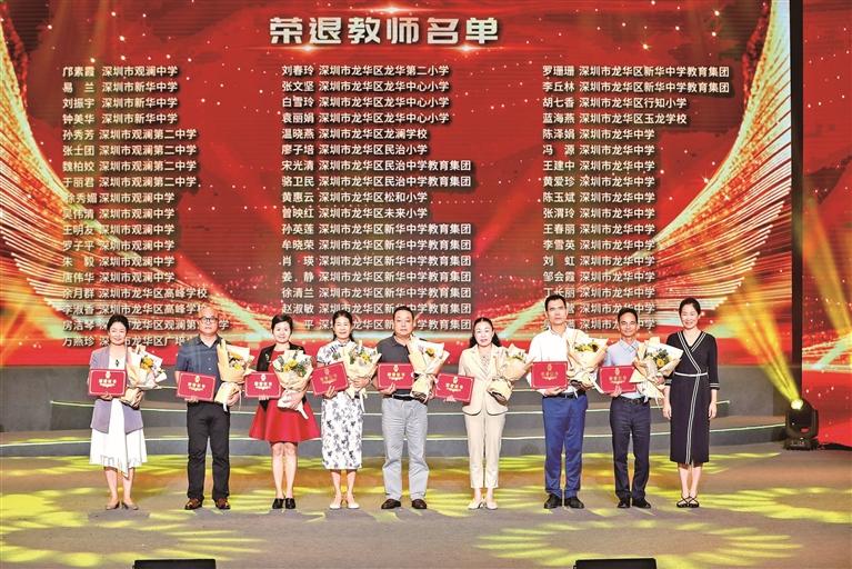 龍華區(qū)30年教齡和榮退教師代表接受表彰。