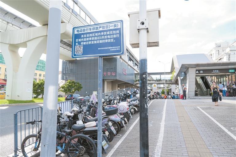 具體來說,一類嚴管區主要是重要的交通樞紐,尤其是地鐵口等亂停放問題最突出的“痛點區域”。目前,龍華區在龍華站、清湖站等8個重點地鐵口周邊,率先開展了一類嚴管區試點;此類嚴管區內,未停在劃線區內,或者在劃線區內連續停放超過3天的電動自行車,將被遷移到指定的臨時停放區,確保地鐵口周邊暢通。