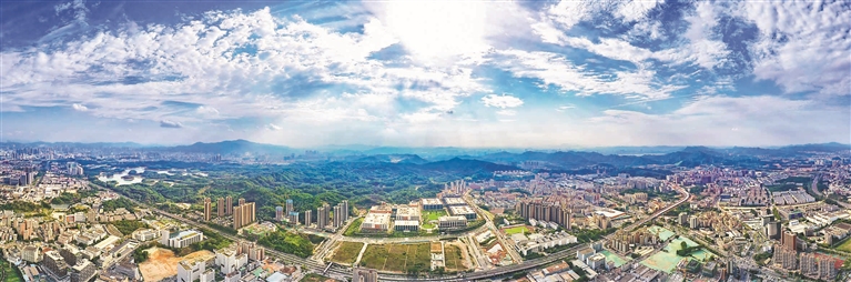 龍華區(qū)為企業(yè)構(gòu)建了“梯度培育+政策護(hù)航+精準(zhǔn)服務(wù)”三位一體培育服務(wù)體系。圖為充滿(mǎn)活力的九龍山數(shù)字城。