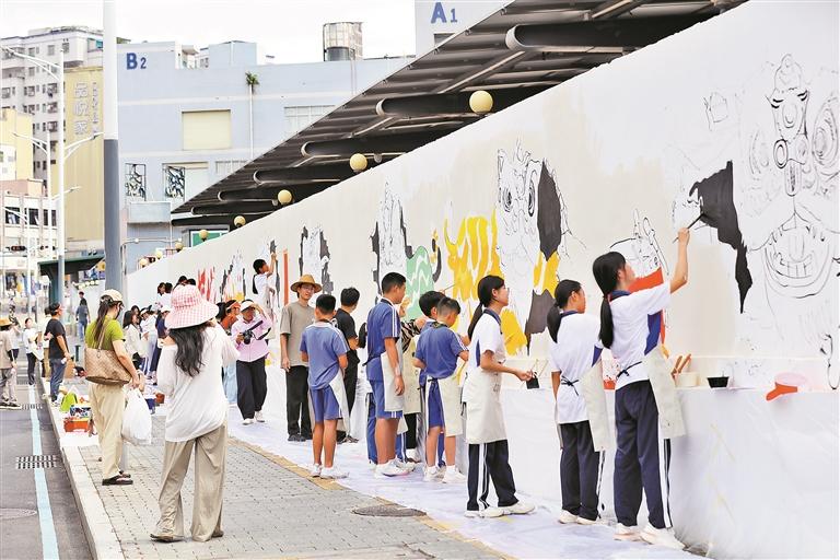 墻面斑斕,青春綻放。近日,在龍華的大街小巷,千余名師生、家長志愿者手持畫筆,蘸滿顏料,在墻面前細(xì)致勾勒、揮灑創(chuàng)意,歡聲笑語中,原本樸素的墻面逐漸被繽紛色彩點(diǎn)亮……這是龍華區(qū)“喜迎十五運(yùn)會 彩繪新龍華”創(chuàng)意墻繪活動的豐碩成果。一幅幅生動的創(chuàng)意墻繪成為居民爭相打卡、拍照發(fā)朋友圈的“新網(wǎng)紅”。