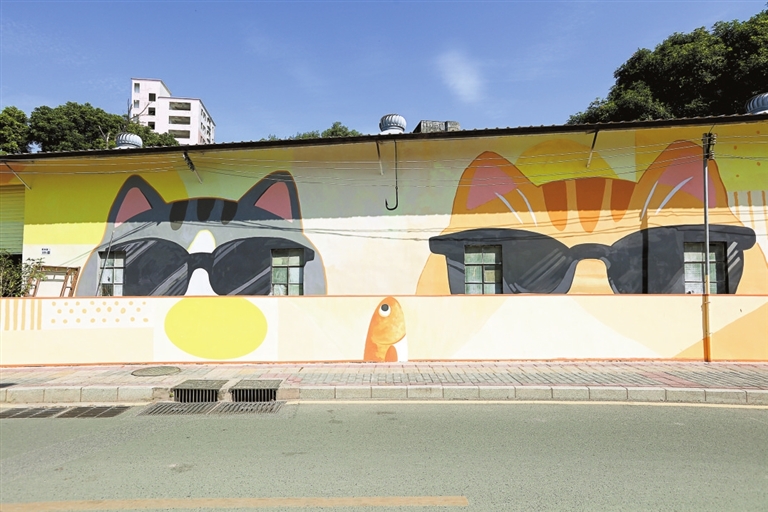 位于觀湖街道大和村的墻繪作品《貓頭貓腦貓墻頭》。