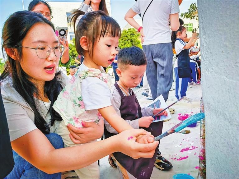 在“喜迎十五運會 彩繪新龍華”創意墻繪活動中,41幅由老師、學生、家長志愿者、民主黨派人士與社區居民共同執筆的作品,正于城市肌理間次第綻放。