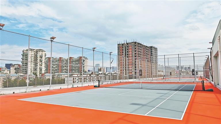 二層通過架空設計打造了10片全場、4片半場籃球場,通透的空間布局搭配良好的采光條件,讓運動體驗更舒適。體育中心屋頂,2片五人制足球場、2片七人制足球場,3片網球場錯落分布。陽光下的足球場綠草茵茵、空氣清新,人們在運動之余,還可遠眺陽臺山自然風光。除核心運動場館外,項目還配套了乒乓球館、健身房、舞蹈室、攀巖場地等特色空間。