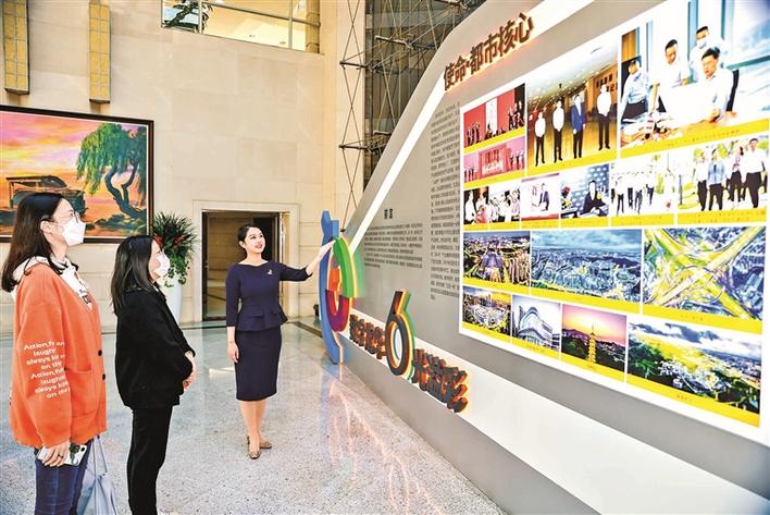 本次圖片展設計以高鐵為靈感來源,銀白色的主色調充滿科技感,喻意時代列車承載著精美畫面從過去駛向未來。展覽內容以“使命·都市核心”“創新·動力澎湃”“生態·山清水秀”“幸?!ひ司右藰I”“奮斗·激情燃燒”“未來·再譜華章”六大板塊貫穿,每一組照片都記錄著龍華人拼搏奮發的身影、城市聚沙成塔的變化、民生幸?;盍Φ南矏?、各行各業閃亮動人的瞬間。