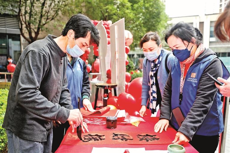 龍華區新時代文明實踐中心開展新春游園活動,書法家為居民義寫春聯。