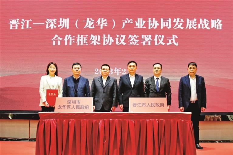 晉江—深圳(龍華)產業協同發展戰略合作框架協議簽署儀式現場。