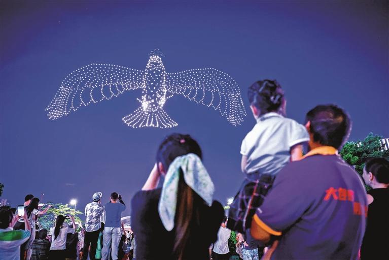 1500余架無人機上演史上最大面積單畫3D“飛龍在天”,市民們駐足仰望,仿佛置身于神奇的幻境中。