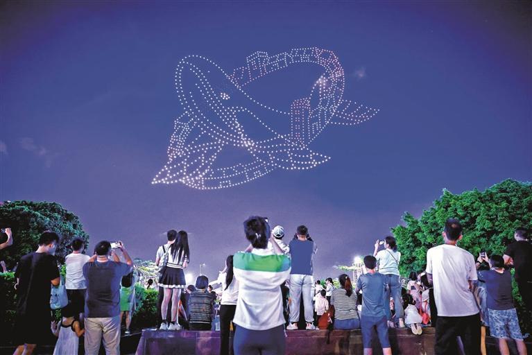 無人機演繹觀瀾河(三條小魚跳躍)主題表演。
