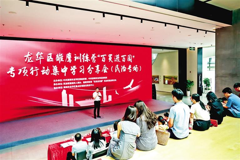 ▲7月23日,龍華區雛鷹訓練營“百員進百園”專項行動集中學習分享會民治專場在龍華城市客廳舉行。