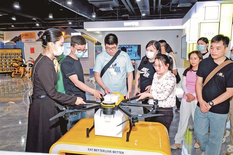 ▲市民在美團大數據運營中心參觀美團無人機設備。