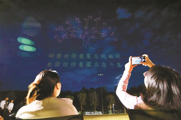 無人機作詩“四季的詩意落在風雨間,生活的詩意藏在奮斗里”。