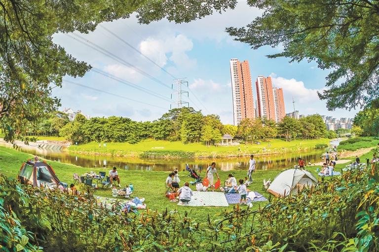 市民在環境優美的觀瀾河畔露營。