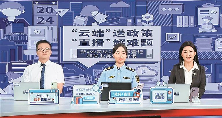 本期直播聚焦市民關(guān)切,詳細(xì)解讀新《公司法》的亮點(diǎn)、變化以及商事登記相關(guān)業(yè)務(wù)的重點(diǎn)事項(xiàng)。相關(guān)部門的兩位業(yè)務(wù)骨干結(jié)合實(shí)例,用通俗易懂的語(yǔ)言,深入淺出地闡述了政策內(nèi)容,讓相關(guān)政策法條在直播間“活”起來,讓廣大市民能夠更好地理解和掌握新政策。此外,為了讓市民知悉熱點(diǎn)業(yè)務(wù)的辦事流程和要點(diǎn),直播現(xiàn)場(chǎng)還就“企業(yè)開辦一窗通”“企業(yè)注銷一窗通”“市場(chǎng)監(jiān)管公益咨詢”等內(nèi)容進(jìn)行了重點(diǎn)講解,并配以視頻指引,讓操作流程更加直觀、清晰。