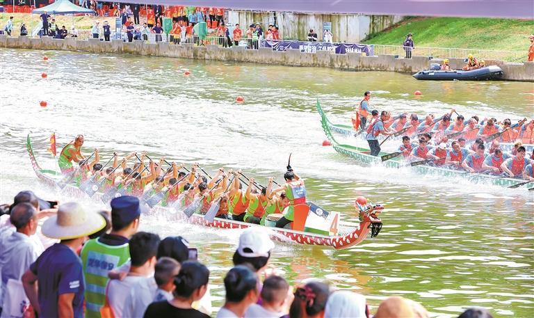 龍舟在賽道上飛馳,宛如蛟龍出水劈波斬浪。