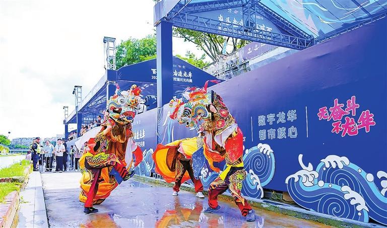 比賽現場還穿插了精彩的文化展演,《金鼓齊鳴》《一葉扁舟》《神獸獻瑞》《余音繞梁》《水中蛟龍》等暖場活動一一上演,極大提升了市民、游客的體驗感。