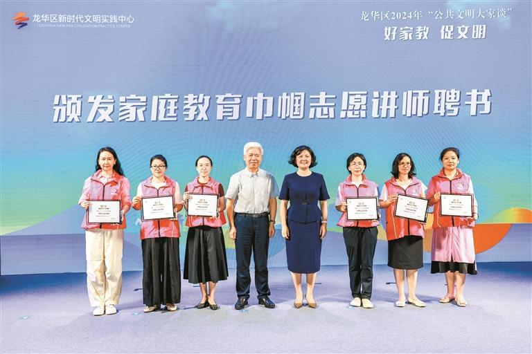 龍華區(qū)向家庭教育巾幗志愿講師頒發(fā)聘書。