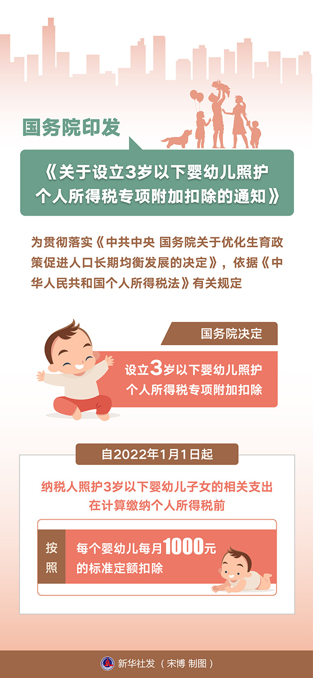 圖表:國務院印發《關于設立3歲以下嬰幼兒照護個人所得稅專項附加扣除的通知》