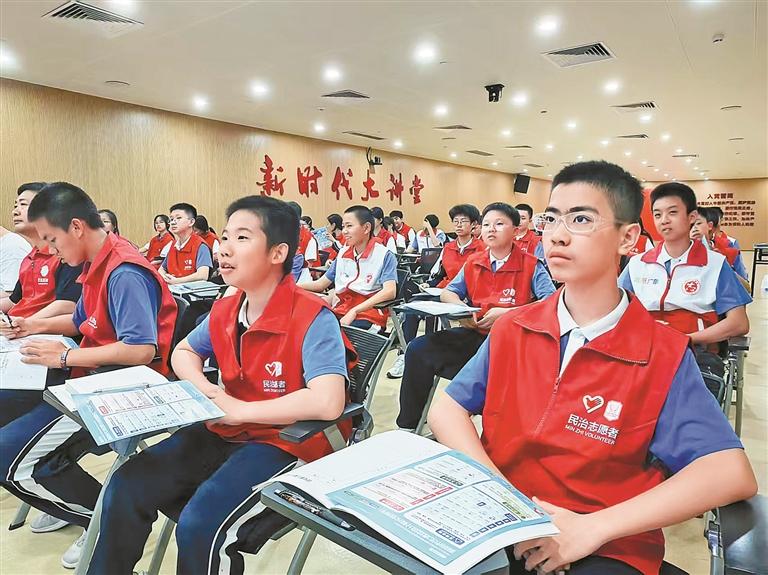青少年是志愿服務的“新鮮血液”,這個暑期,社區第10屆學生志愿服務實訓營正在如火如荼地進行,40名初中、高中學生志愿者經過志愿服務禮儀培訓,分散在長者配餐、兒童暑期班、路口勸導、高鐵站護航、黨群值守等不同崗位,開展為期一個月的服務。日常,轄區學校的入團積極分子,也持續前往社區開展志愿服務,為社區注入源源不斷的青春活力。
