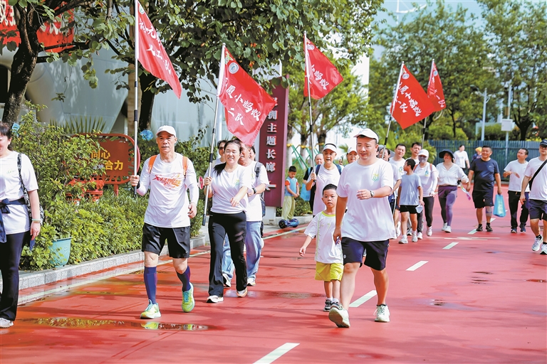 ?市民參與龍華區(qū)“萬步有約”健步走。