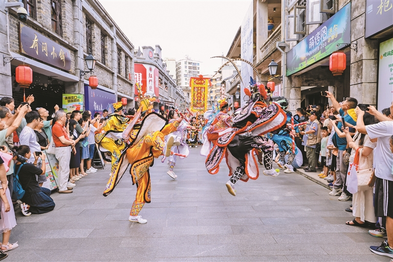 與傳統“臺上表演、臺下觀看”的模式不同,本次活動特別注重互動與體驗,讓市民游客從“旁觀者”變為“參與者”,許多游客和小朋友受熱烈氣氛感染,跟隨節奏擺動身姿加入巡游隊伍,親身感受英歌舞傳遞的活力與激情。