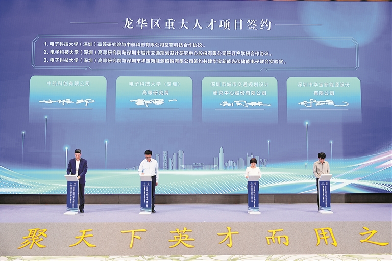 活動現場,舉行了龍華區重大人才項目簽約儀式。