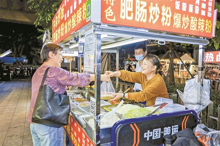 攤販們按規(guī)有序經(jīng)營,過往市民駐足選購,煙火氣在市井愈發(fā)濃郁。