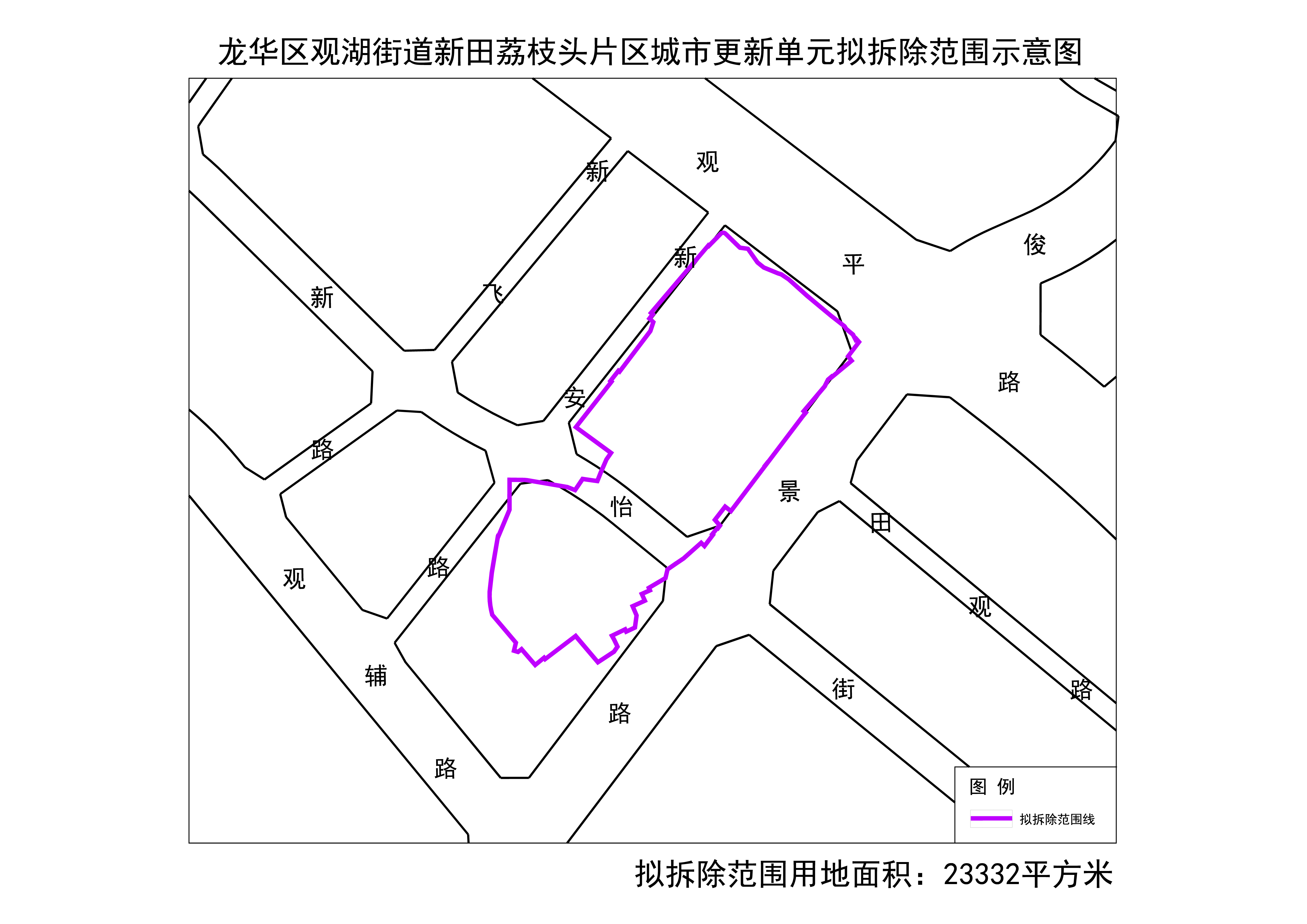 附件:龍華區(qū)觀湖街道新田荔枝頭片區(qū)城市更新單元擬拆除范圍示意圖