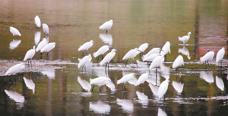 ▲近年來龍華生態環境不斷變好,大批白鷺在觀瀾河棲息覓食。