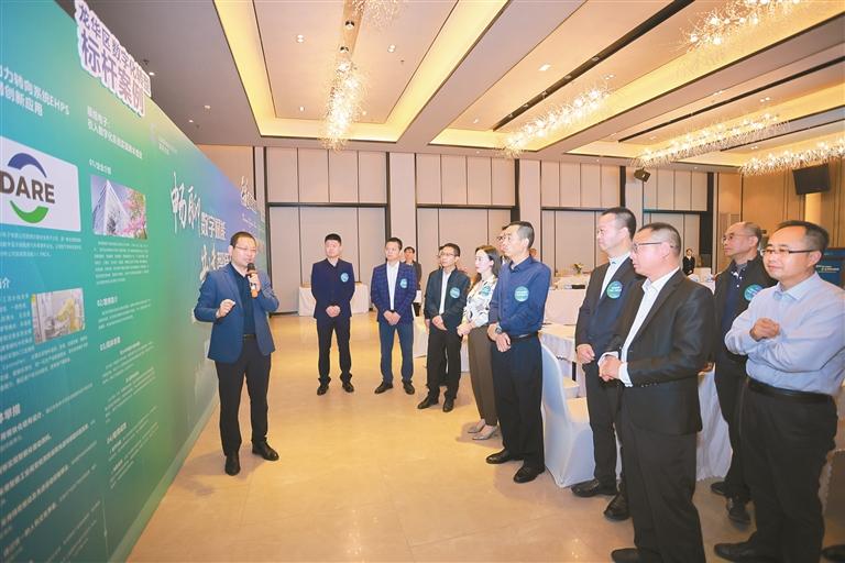 ▲企業代表觀看龍華區數字化轉型標桿案例展板。