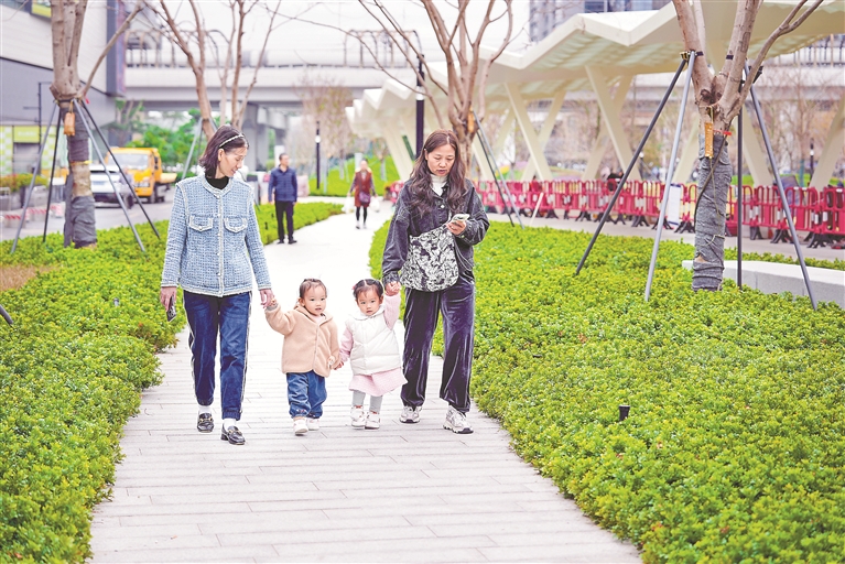 據相關負責人介紹,項目旨在打造龍華重要商業片區中近悅遠來的綠色生態休閑空間,提出了三大核心設計策略。一是創造最彈性的活動空間,項目科學規劃靈感花園、靜謐花園、入口廣場、草坪劇場、樹陣廣場、林下休憩等區域,為居民群眾提供休閑活動的公共綠地公園。二是串聯最便捷的城市走廊,項目有機融入深圳“兩館”和紅山6979商業綜合體,更好滿足通行、休憩、游玩、活動等需求。三是引領最藝術的沉浸體驗,項目結合深圳“兩館”所蘊含的文化特質,以藝術性、文化性作為公園核心內涵,融入文化交流、科技互動等多種體驗元素,打造集光影、藝術等為一體的特色公園。