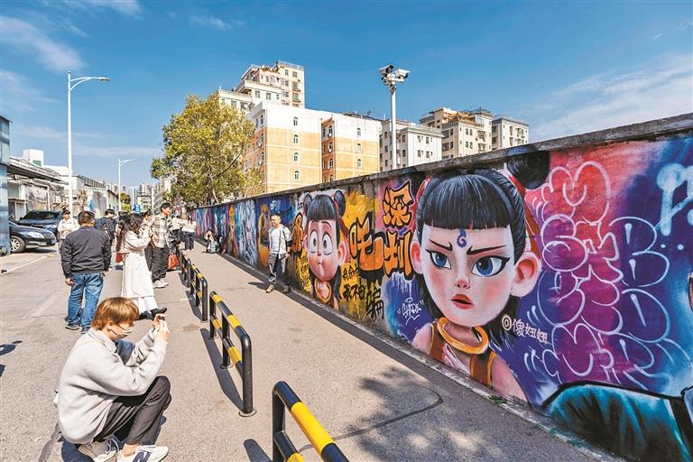 最近,有關(guān)龍華的熱點(diǎn)話題中,榜首非哪吒涂鴉墻莫屬。生動(dòng)有趣的國漫人物形象從熒幕走到街頭,“親民”形象吸引一眾市民游客前來拍照打卡,“哪吒元素”正以最快的速度讓龍華火熱出圈,燃爆全網(wǎng)。