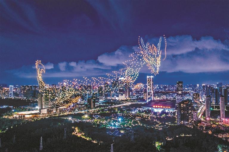 “國”風(fēng)涌動(dòng),新“潮”澎湃。近年來,龍華區(qū)全面實(shí)施“百千萬工程”,以區(qū)域協(xié)調(diào)發(fā)展戰(zhàn)略為牽引,堅(jiān)持大力發(fā)展國潮文化、科技文化、時(shí)尚文化等多元文化相融共生的文化理念,推動(dòng)城市高質(zhì)量發(fā)展。無人機(jī)編隊(duì)震撼上演“飛龍?jiān)谔臁保粰C(jī)器人亮相亞冬會(huì)與火炬手擊掌;傳統(tǒng)非遺“牽手”影像舞蹈;陶瓷“國禮”、時(shí)尚潮服風(fēng)靡全球……龍華區(qū)在文化傳承、文化自信、科技創(chuàng)新、創(chuàng)意設(shè)計(jì)以及智能制造方面持續(xù)發(fā)力,一次次刷新人們對這座年輕城區(qū)的認(rèn)知。通過深耕國潮文化發(fā)展,龍華走出一條“科技+文化”“傳承+創(chuàng)新”的特色發(fā)展路徑,以“跨界+出海”“地標(biāo)+體驗(yàn)”等形式,向世界展示大美龍華的風(fēng)華與魅力。