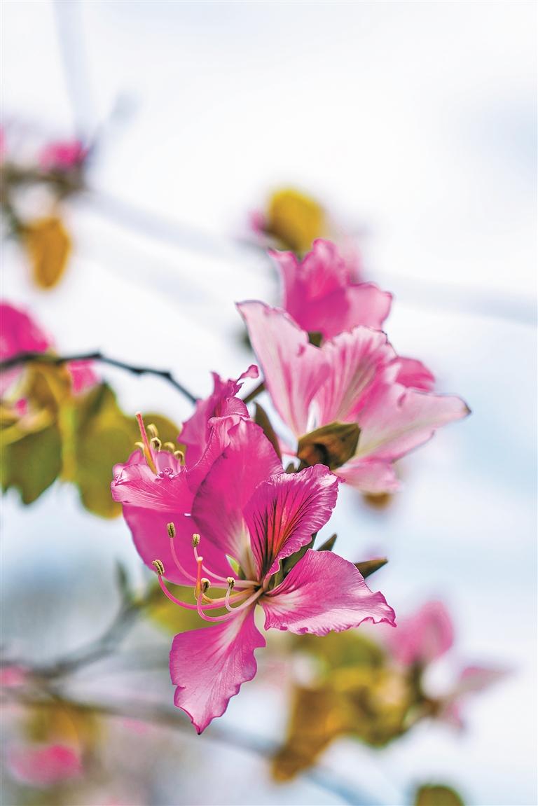 宮粉紫荊也叫洋紫荊,別名宮粉羊蹄甲,喜歡溫暖濕潤(rùn)、多雨的氣候、陽(yáng)光充足的環(huán)境,花期主要集中在冬春季節(jié),3月最為盛放。