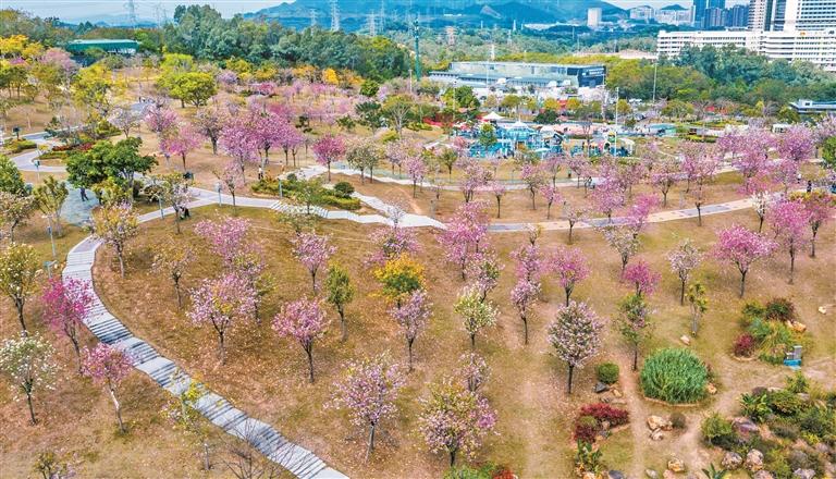 春意正濃,深圳北站中心公園變成“粉色仙境”。近日,公園內(nèi)數(shù)百株宮粉紫荊競(jìng)相盛放,連綿的粉白色花海與藍(lán)天白云、青草綠樹(shù)交相輝映,吸引眾多市民游客駐足打卡。