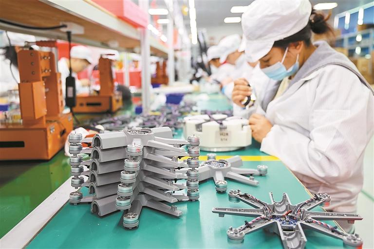 工人在位于龍華區的大漠大智控生產車間生產第四代無人機。