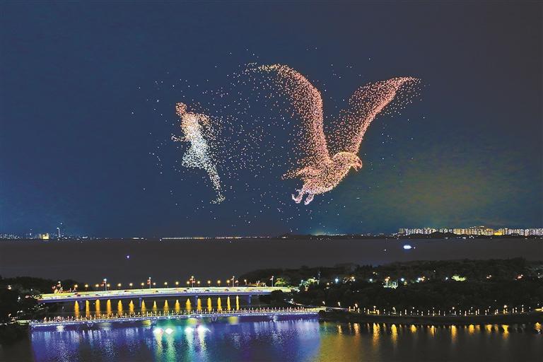 大漠大智控用無人機呈現天空之城造型。 圖片均據新華社