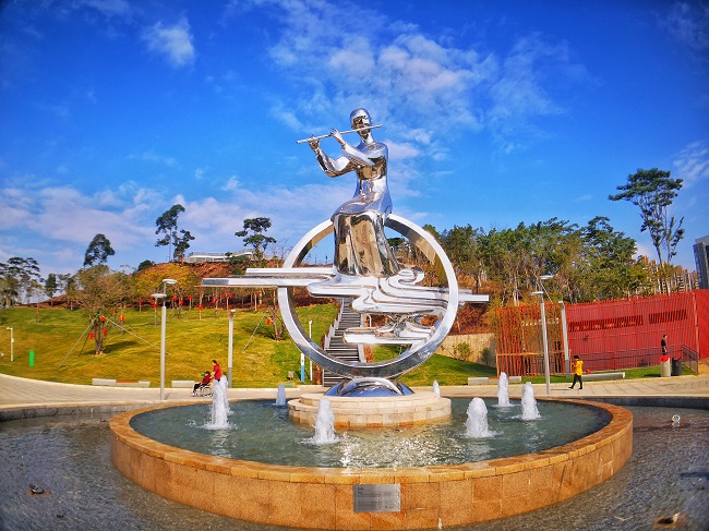 白石龍音樂公園是深圳市首個音樂主題公園,占地面積約11.6萬平方米,總投入約9800萬。惠及白石龍、民樂、北站等多個片區的居民,與規劃中的北站中心公園、玉龍公園、大腦殼山生態公園等形成生態長廊。白石龍音樂公園由主次入口區、音樂休閑區、互動休閑區、陽光綠地區、登山休閑區五個功能區組成。每個功能區設計充分融入音樂元素,雕塑、鋪裝、座凳、景墻等,均按五線譜、小提琴等音樂器材形狀設計。公園規劃建設公共廁所3座、垃圾中轉站1座、廣場景橋及特色廊架12座、室外停車場約60個車位。
