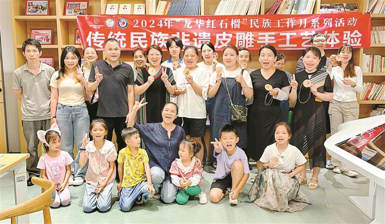 近日,龍華區(qū)委統(tǒng)戰(zhàn)部(區(qū)民宗局)2024年“龍華紅石榴”民族工作月系列活動之傳統(tǒng)皮雕手工藝體驗活動在龍華人才園黨群服務(wù)中心開展。眾多民族同胞在老師的指導(dǎo)下,共同制作了寓意深遠的“紅石榴”主題同心圓美妝鏡。