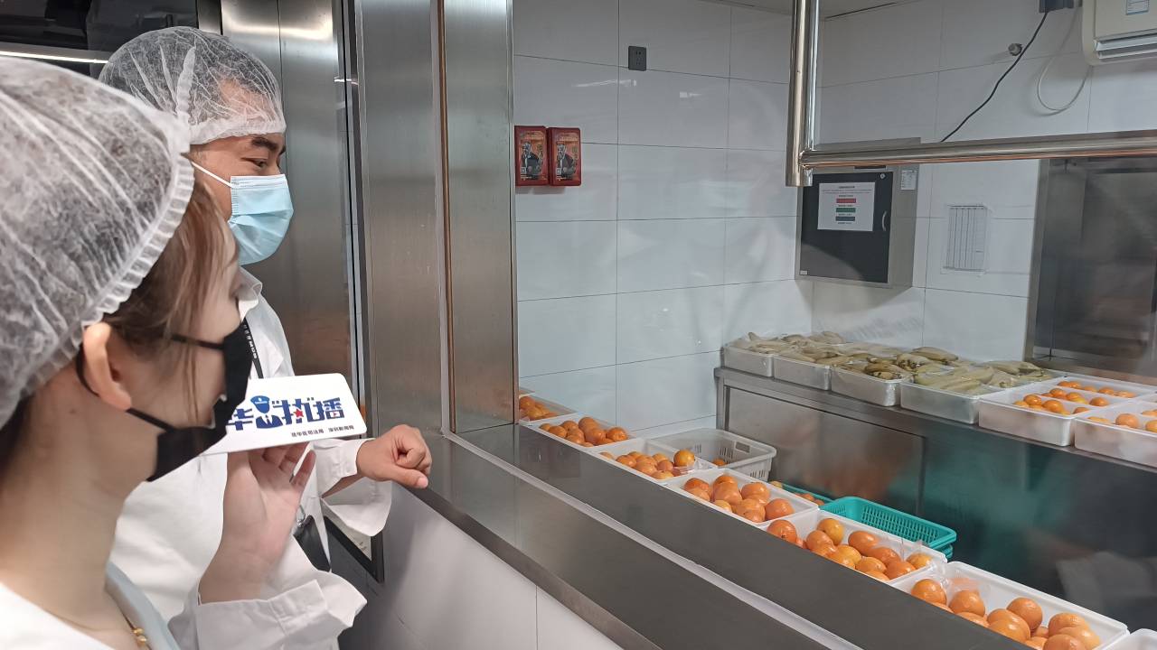 本期龍華“執”播行動的執法單位是深圳市市場監督管理局龍華監管局,執法人員王永鑫、曾炎冬全面檢查了學校食堂食品安全工作,家長代表曾女士全程參與執法過程。經檢查,龍華區萬科雙語學校食堂食品安全情況較好,維持對該校的餐飲服務量化A級評定。同時,執法人員與區司法局、深圳新聞網工作人員全力配合、嚴格落實疫情防控工作,持24小時核酸檢測陰性證明且14天內無境外和中高風險區旅居史,全程佩戴口罩,在進入食堂前穿戴全套專用衣帽,并在進入食堂后進行手部清洗消毒。